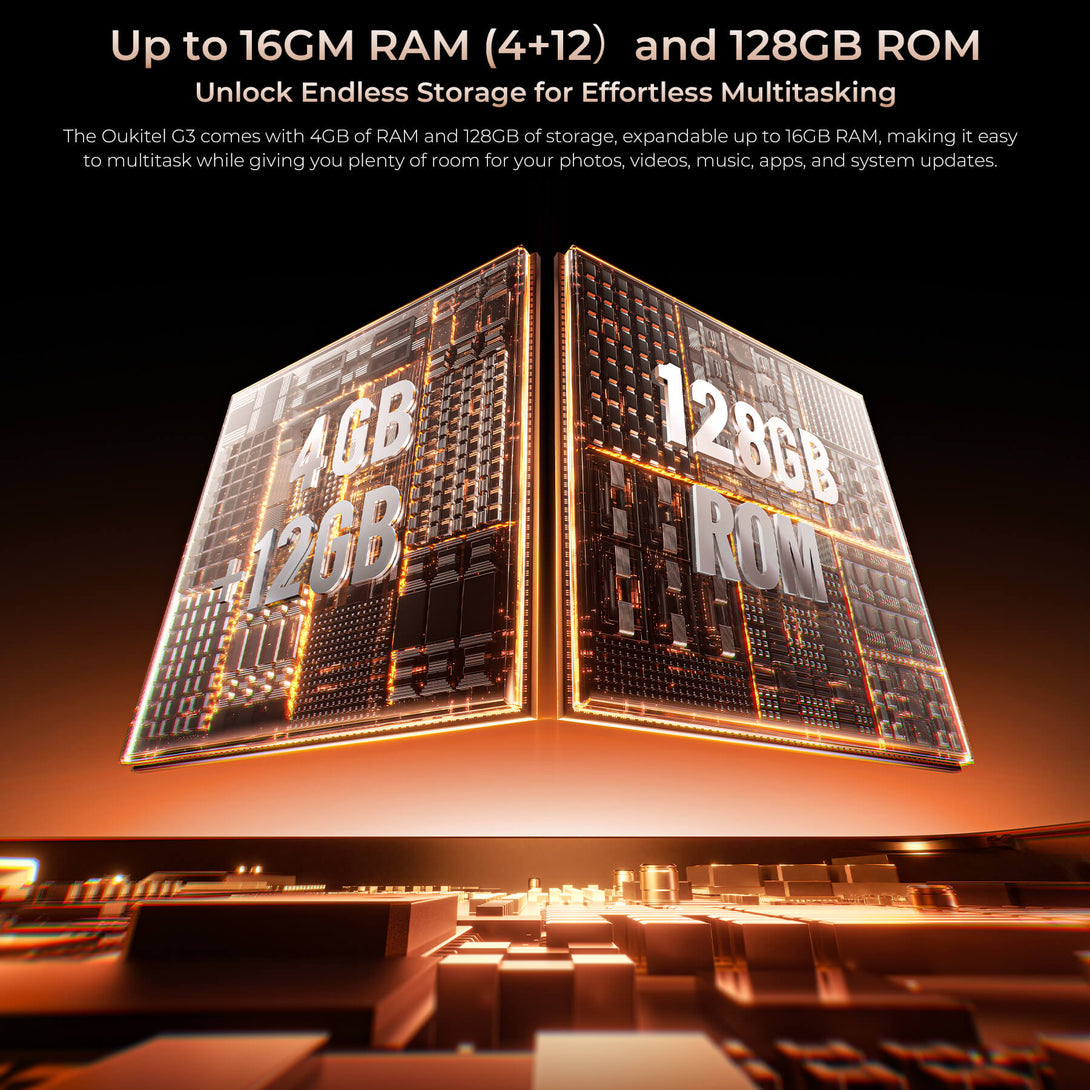 Oukitel G3 Rugged Phone 6'' HD+ Display 6300mAh Big Battery 13MP Camera Android 14(4GB+128GB)