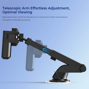 This is a 360° rotatable vehicle bracket. It features a silicone pad to protect your device from damage, an adjustable telescopic arm for easy angle and distance adjustment, and a super-strong suction cup base to handle bumpy roads or sharp turns.