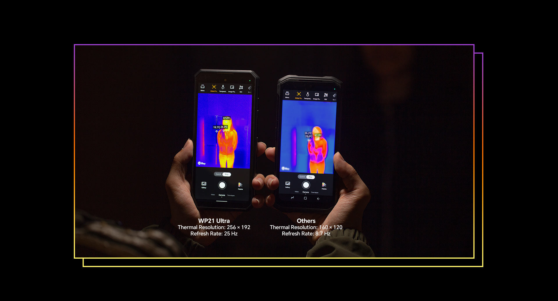 The OUKITEL WP21 Ultra rugged smartphone comes with a highly sensitive 256x192 , 12 μm InfiRay uncooled infrared detector,with a refresh rate of 25 Hz.Temperature measurements are highly accurate,and thermal images and videos are crisp and clear even in total darkness and adverse weather conditions.