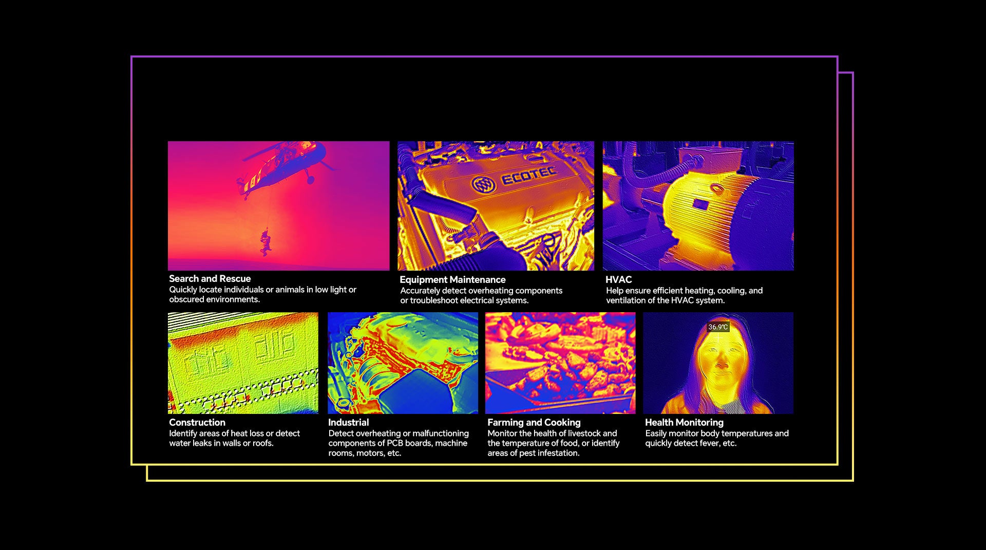 Combined with a dedicated 5MP visual light camera,the WP21 Ultra offers enhanced image quality, upgraded thermal resolution,and more details in thermal imaging videos and photos.It quickly and accurately locates temperature problems not seen with the naked eye.It helps you find electrical short, air leaks,plumbing issues,hot fuses,insulation problems,missing pets,and much more easily.