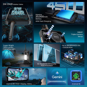 Oukitel WP61 Plus 5G Walkie-Talkie Rugged Phone 6.78'' HD+ Display 20,000mAh Big Battery 108MP Camera Android 16(12GB+512GB NFC)